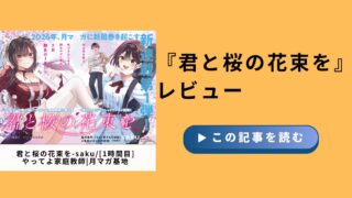 レビュー【感想】君と桜の花束を|元アイドル受験ラブコメの魅力 『君と桜の花束を』は、元人気アイドルのヒロインと家庭教師の主人公が難関大学を目指す青春ラブコメ漫画です。本記事では、作品のあらすじや登場人物、見どころ・魅力をわかりやすく紹介します。元アイドルが医者を目指すユニークな設定や、三人の関係が交差する青春ストーリーの魅力を解説。 2026.03.18レビュー漫画