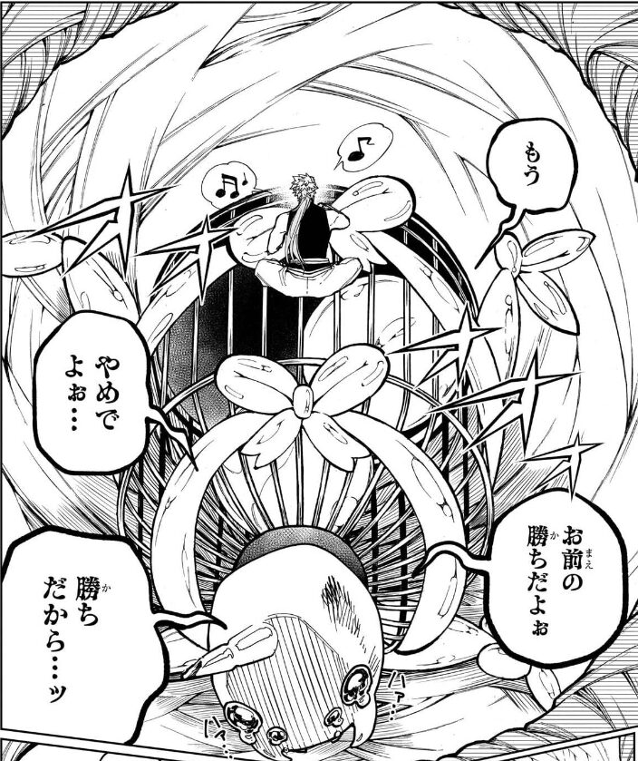 これまでの魔法が「狩って習得する」戦いだったのに対して、檻蜘蛛の魔法はイチの優しさが見えるエピソードでもあり、印象に残る魔法の一つです。