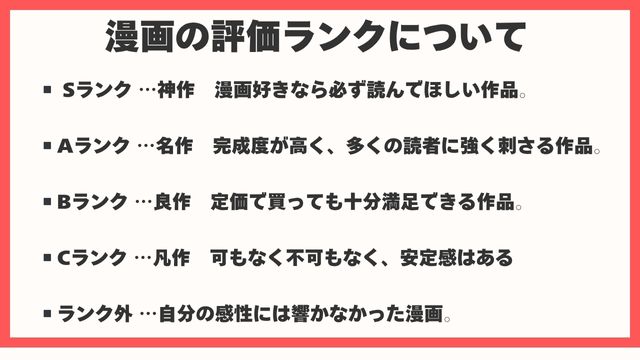 漫画の評価については、下記のランクごとに分けています。